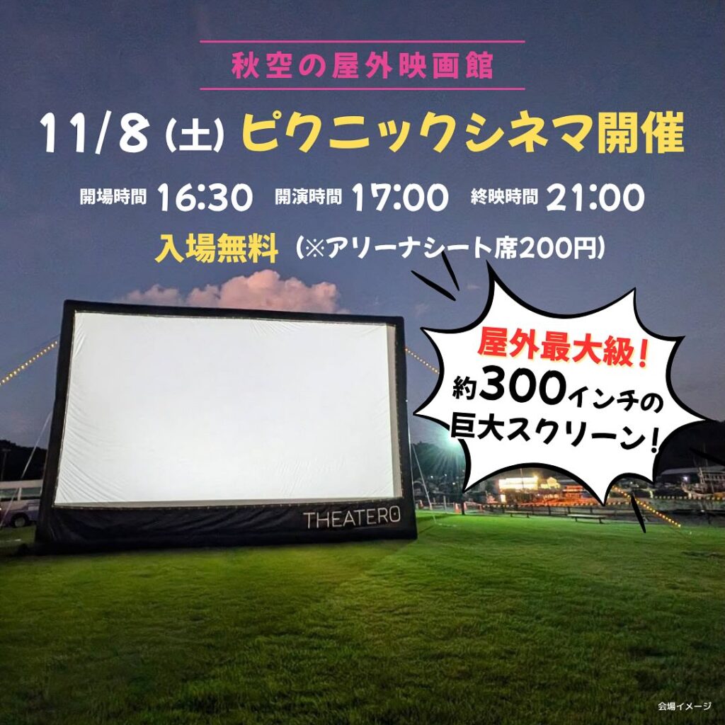 秋空のもと、屋外最大級のスクリーンで名画を楽しみましょう。